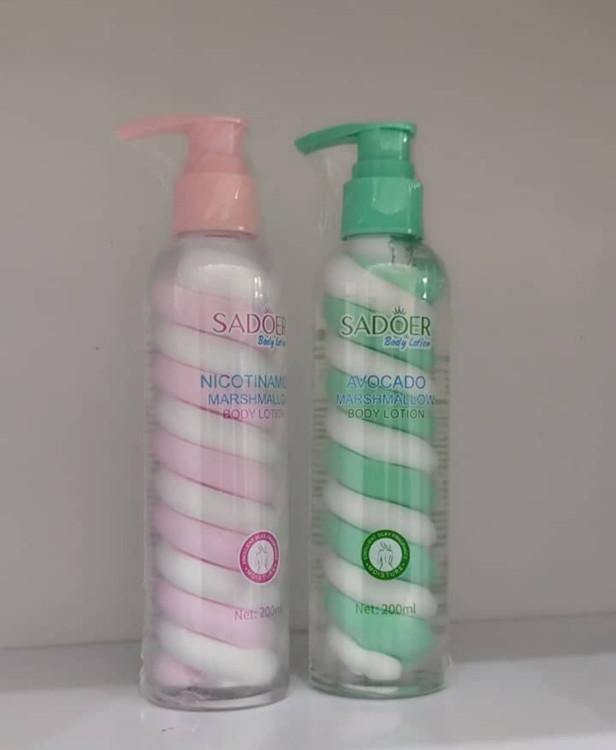 لوسیون بدن مارشمالو (بهویژه برند سادور - Sadoer) یک مرطوبکننده و آبرسان قوی با بافت سبک ژل-کرمی است. این محصول حاوی نیاسینامید (ویتامین B3)، عصارههای طبیعی و پودر مروارید است که برای انواع پوست مناسب بوده، باعث روشنشدن، کاهش تیرگی و نرمی پوست میشود و رایحهای شیرین و ماندگاردارد